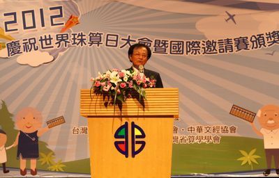 由台灣省商業會、中華民國全國商業總會等單位共同舉辦的「2012年慶祝世界珠算日大會暨國際珠心算比賽」,7月22日在新北市政府盛大登場;今年有來自8個國家的代表團、選手來台競技,總共逾3000人與會,現場熱鬧滾滾;大會主席、世界珠算心算聯合會副會長葉宗義(見左圖)致詞強調,珠算已成為每個人終身學習的有效工具,省商會計畫進一步推動成立「台灣珠心算千人俱樂部」,以老者為成員,藉以凸顯珠心算可以有效防止老..