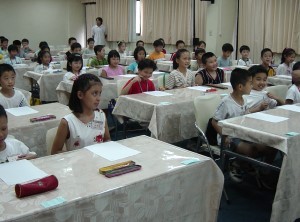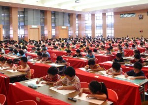 2008年7月19日來自台北、桃竹苗、高雄、香港、檳城、南加州、北加州的珠心算好手齊集舊金山灣區紐華克(Newark)的Hilton Hotel舉行國際城市杯三算全能競賽,除了參賽學生以珠會友、切磋三算能力以外,來自各城市的珠心算老師有機會相互交換三算教學和班級經營心得,意義重大,席間有人提及三算教學中,到底需不需要檢定和競賽,引起作者的興趣,這兩種參雜有相當評鑑競爭壓力的活動,到底「適..