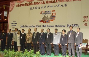 2003年的最後6日適逢第5屆泛太平洋珠心算比賽的重要日子,本屆由印尼主辦並於首都雅加達舉行,台灣代表團陣容浩大,由台灣省商業會珠算委員會執行顧問陳士忠先生及顧問劉廷春先生,陪同泛太平洋珠心算協會中華民國總會會長廖正輝老師率團前往,包括各組選手68人,團員、老師等87人參加。一行人在12月26日下午一時許抵達雅加達國際機場,出關時本屆東道主泛太平洋珠心算協會印尼總會會長曾吉芳先生已率領其重要幹部於..