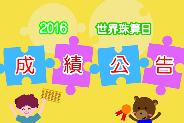 【成績公告】2016年祖孫樂活珠算趣味競賽、全國心算比賽暨國際邀請賽、全國數學競技大賽暨國際觀摩賽、全國珠算比賽暨國際邀請賽