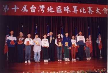 為宣揚珠算啟迪智慧功能,帶動珠心算學習風氣,提高台灣地區珠心算教育水準,台灣省商業會歷年來均假全國各地舉辦台灣地區珠算比賽,由於比賽過程嚴謹,題型層次最高,往往都能鼓舞各地區學習珠心算風潮,使全國珠心算教育蓬勃發展。今年,第10屆台灣地區珠算比賽已於4月16日假台北市中泰賓館圓滿結束,此次比賽共有207名選手參賽,本會除頒發各分組團體賽、個人綜合賽獎項以外,並特別將全部參賽選手成績合併評比,依序錄取黃邦碩、陳芳紜、黃邦瑞、林佳瑤、郭育如、蔡佩芳、王政權、蘇珍儀、許友信、陳威宏等成績排名前10名選手,授予2000年台灣地區珠算十傑的殊榮,由於這是代表著得來不易的最高榮譽,頓時成為全場注目的焦點。今將10名選手簡介如下: