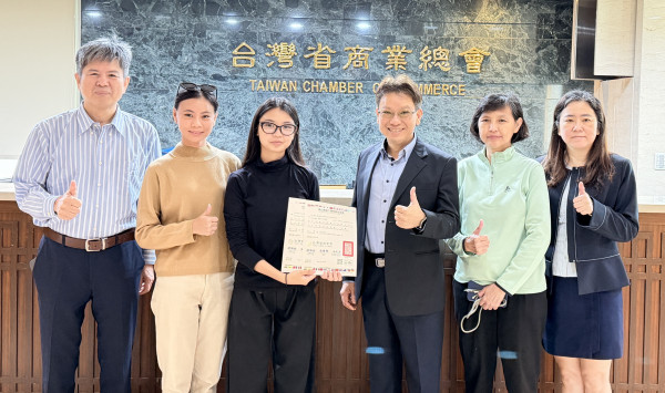 印尼Sempoa SIP長期與省商總會合作辦理珠心算檢定及師資培訓,其學生CLARA MARIE FELICIA FODIANTO(左三)特於114年12月23日訪台期間拜訪省商總會並親自領取心算9段、珠算7段位合格證書,由本會副秘書長林元翔(右三)親自頒發。